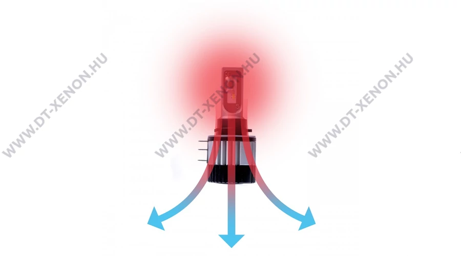 A LED a hűtőbordák között aktív hűtésű ventilátort tartalmaz.
