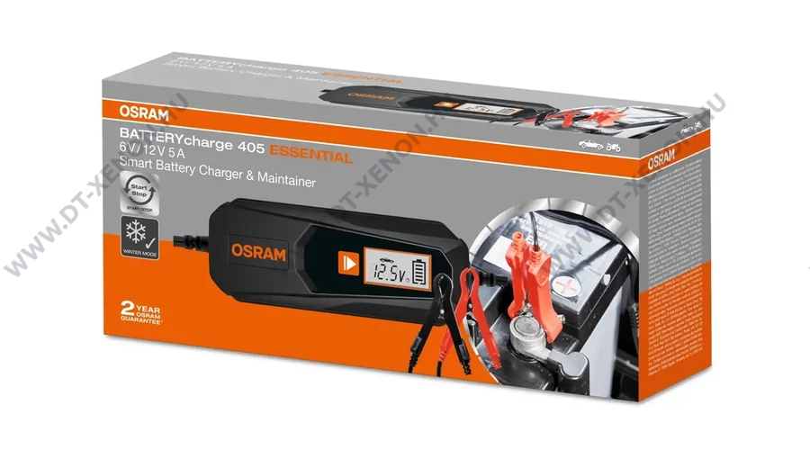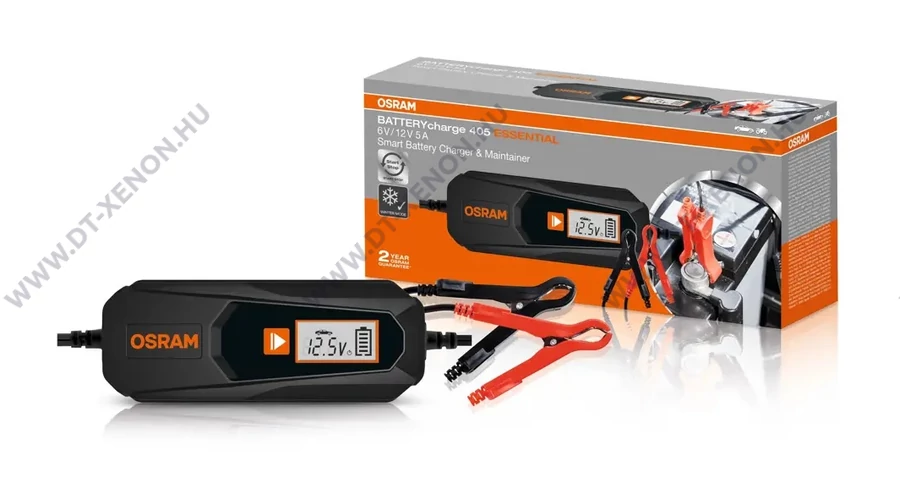 Az OSRAM BATTERYcharge 405 ESSENTIAL egy 5 A-es intelligens töltő és akkumulátor karbantartó 6 V-os és 12 V-os járművekhez, beleértve a motorokat és a legtöbb kisebb járművet. 7 fokozatú töltési ciklus egyetlen gombnyomással a lítium akkumulátorokhoz, és csak 9 fokozatú az ólomsavas/AGM akkumulátorokhoz. Csatlakoztassa, és győződjön meg arról, hogy az akkumulátortöltő karbantartja az autó akkumulátorát, mivel az automatikusan hosszú távú karbantartási módba áll, amikor az akkumulátor megtelt. Tartalmaz egy digitális kijelzőt, amely megkönnyíti a töltési folyamatot, és számos biztonsági funkciót tartalmaz, beleértve a fordított polaritást és a rövidzárlat elleni védelmet.
