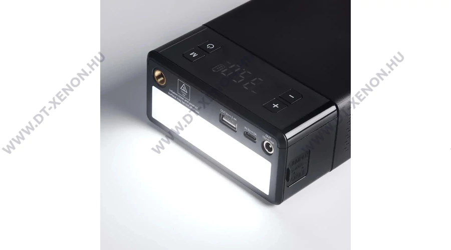 Ellenőriznie kell a gumikat? A beépített gumiabroncs-felfújó digitális nyomásmérővel és automatikus leállítási funkcióval rendelkezik az egyszerű és pontos felfújás érdekében. A 12 V-os aljzat lehetővé teszi számos eszköz táplálását a szivargyújtón keresztül, míg az USB power bank biztosítja, hogy bárhol töltse telefonját vagy egyéb kütyüjét.