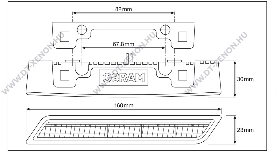 - Fényforrás méretei: 160mm x 23mm x 30mm