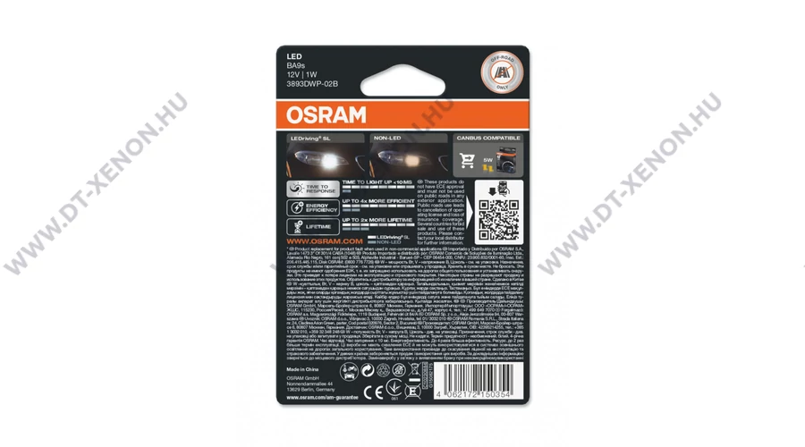 Gyengén canbus kompatibilis LED, ezért canbus rendszerű autóhoz az Osram LEDCBCTRL101-es 5W-os ellenállás készlettel együtt ajánljuk.