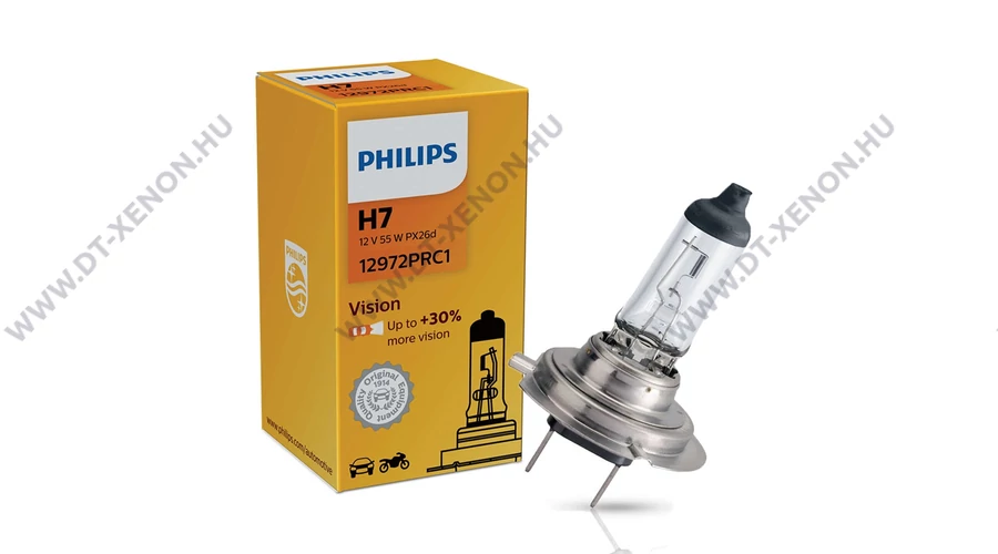 Német gyártmányú PHILIPS Vision 12972PR gyári számú, H7 foglalatú halogén izzó.