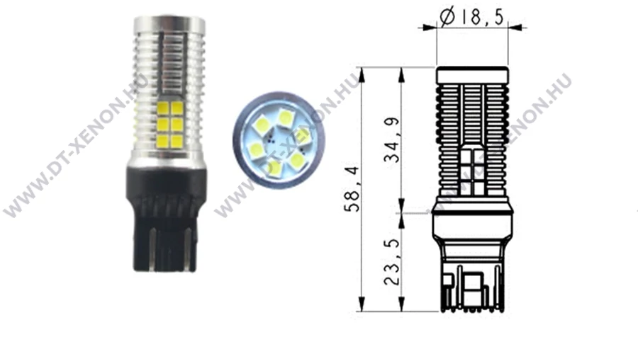 W21W izzó helyére is lehet tenni ezt a "2 szálas" W21/5W LED-et, mivel W21W esetében ugyanúgy a 21W-os szálon világíttatja az összes LED-et.