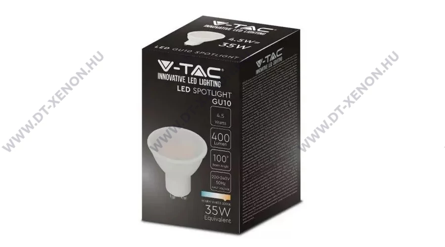 V-TAC GU10 spot LED 4,5W (=35W) 3000K VT-1975 / SKU-211685